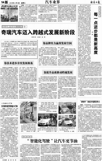 奇瑞汽车迈入跨越式发展新阶段