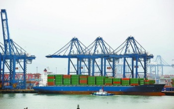 4月14日,一艘装满集装箱的货轮停靠在深圳港盐田港区码头。最新公布的一季度外贸数据显示,广东今年前3个月进出口贸易总值达到1532亿美元,比上年同期增长32.7%。 新华社记者 陈晔华摄