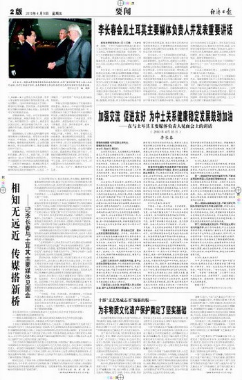 李长春会见土耳其主要媒体负责人并发表重要讲话