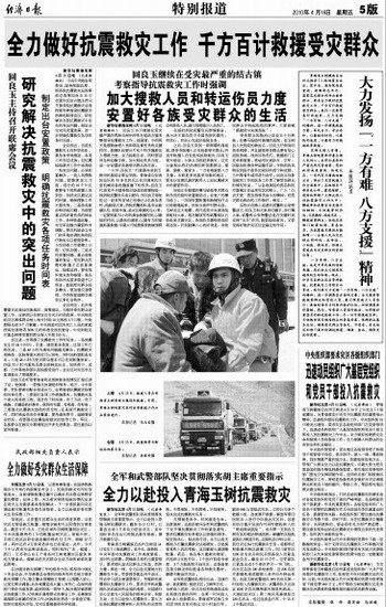 全力以赴投入青海玉树抗震救灾
