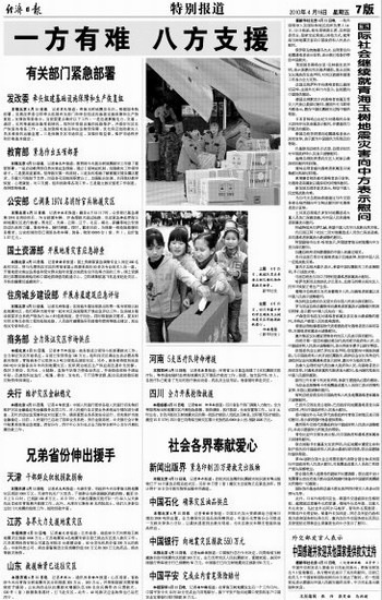 国际社会继续就青海玉树地震灾害向中方表示慰问