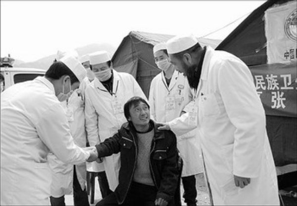 | 4月20日,中国民族卫生协会抗震救灾医疗队在玉树地震灾区为受灾群众治疗。 |