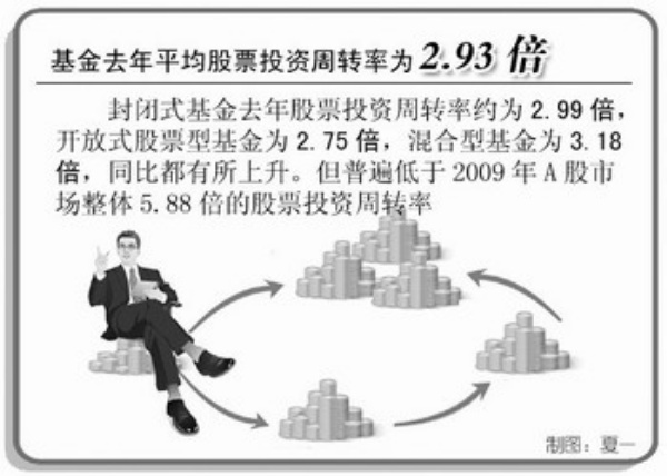 本报讯 2009年基金年报显示,全部偏股型基金去年股票投资周转率为2.93倍,比2008年的1.8倍明显上升。其中,封闭式基金去年股票投资周转率约为2.99倍,开放式股票型基金为2.75倍,混合型基金为3.18倍,同比都有所上升。但普遍低于2009年A股市场整体5.88倍的股票投资周转率。