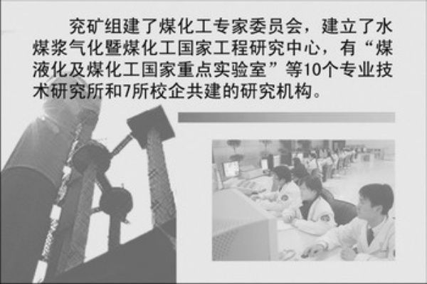 目前,兖矿组建了煤化工专家委员会,建立了水煤浆气化暨煤化工国家工程研究中心,有“煤液化及煤化工国家重点实验室”等10个专业技术研究所,还专门成立了7所校企共建的研究机构。继三项核心技术获“十五”国家863计划支持之后,又有五项技术列入国家“十一五”863计划课题。