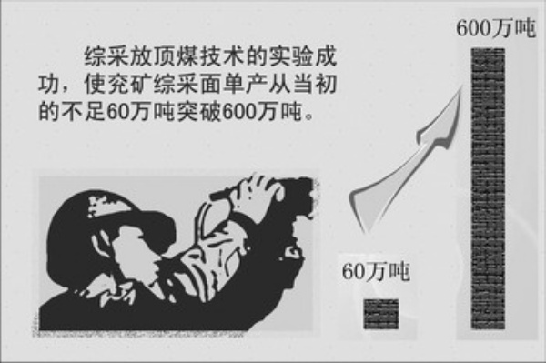 “由于西方发达国家综合机械化开采技术的采高一般在3米以下,按照这一技术对厚煤层采用分层开采,每一分层都要布置一套复杂的生产系统,单产水平很难有大的突破。”在生产中,兖矿集团总工程师黄福昌发现引进的“洋设备”也遇到了“新瓶颈”。兖矿集团决定组织精兵强将进行技术攻关:在煤层的底部布置工作面,以采煤机采煤向前推进,支撑设备上方的煤炭借矿山压力破碎,然后通过特别设计的放煤机构放出。