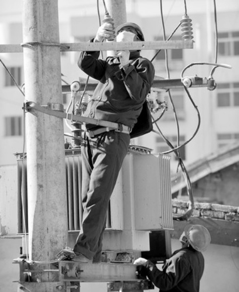 电力抢修人员在玉树州体育场抢修电力设备。在电力部门紧急抢修和调配临时供电设备的努力下,截至21日8时,地震损坏的2条35千伏线路、9条10千伏线路已全部抢通。 新华社记者 王 鹏摄