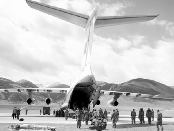 4月21日,在玉树巴塘机场,救援部队官兵在搬运刚刚运抵的一批救援物资。当日,一架运输机满载近20吨救援物资抵达玉树。这批物资主要包括灾区急需的帐篷、药品和食品。 新华社记者 刘 杰摄