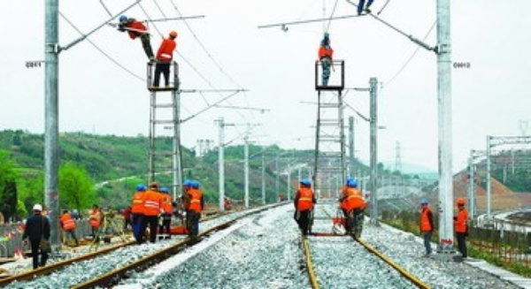 4月22日,南昌铁路局供电段的技术人员对昌九城际铁路接触网工程进行检查验收。当日,昌九城际铁路开始全面进入验收阶段。(南)昌九(江)城际铁路是我国第二条城际铁路,今年6月底可开通试运营。 胡国林摄 (新华社发)