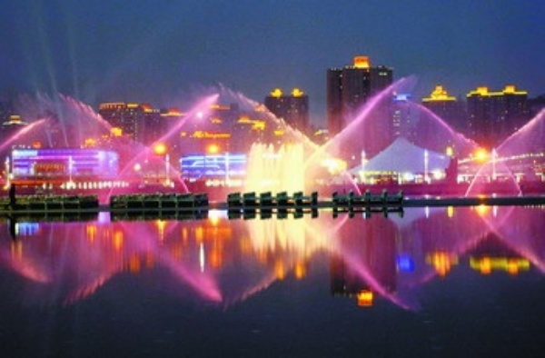 4月22日,位于上海世博会浦东和浦西园区之间的音乐喷泉把园区景色装点得亦幻亦真。 吴 煌摄 (新华社发)