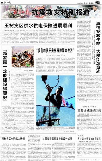 工作人员普措为临时安置点的受灾群众架设太阳灶