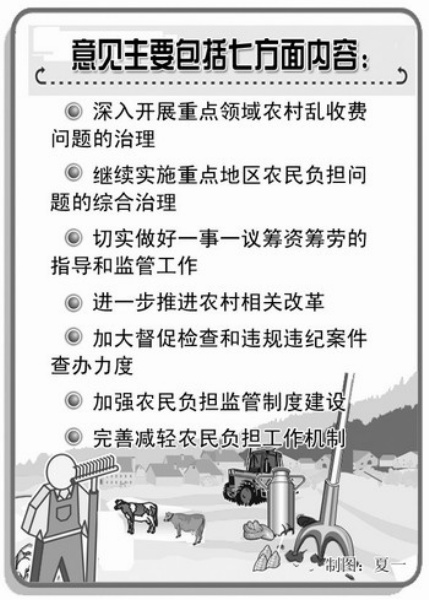 日前,农业部、国务院纠风办、财政部、国家发展改革委、国务院法制办、教育部、新闻出版总署联合发出《关于做好2010年减轻农民负担工作的意见》。记者就此采访了农业部有关负责人。