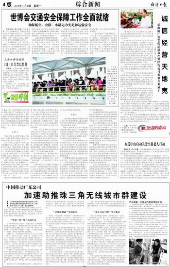 随着上海世博会的筹办,“绿色世博”理念已融入到上海的建设发展之中。不久前,投资近10亿元的亚洲最大生活垃圾内河集运系统在上海正式开通,并将在上海世博会期间投入运营,这将改变上海垃圾车船散运的方式,彻底杜绝了垃圾转运中的“二次污染”。这项民生工程也为上海建设美好城市,为市民创造美好生活,提供了必要的保障。