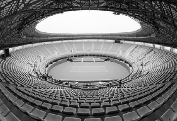 4月26日是广州亚运会倒计时200天,日前,12个新建场馆中的11个场馆已实现主体结构封顶。这是4月25日拍摄的广州亚运会新建场馆————奥体网球中心中心球场内景。 新华社记者 刘大伟摄
