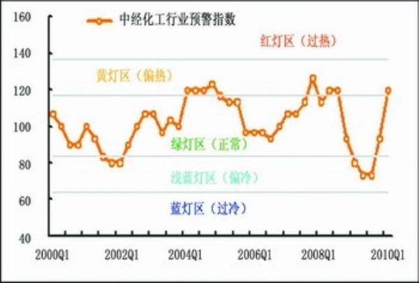 2010年一季度,中经化工行业预警灯号由绿色变为黄色,表示化工行业运营状况由正常转变为偏热。