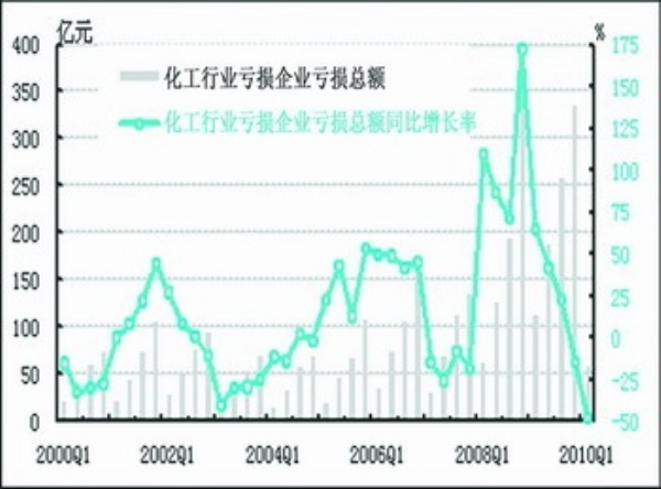2010年一季度,化工行业税金总额为333.7亿元,同比增长21.9%,环比下降5.6%,化工行业税金总额总体回升形势有所放缓。
