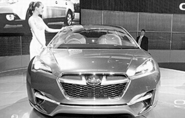 | 斯巴鲁最新混合动力概念车“SUBARU HYBRID TOURER CONCEPT”亮相北京车展。该车配备了左右对称全时四轮驱动系统和无级变速器,实现了环保性、操控性及安全性。 本报记者 王薇薇摄 |