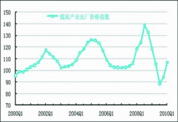 价格:一季度,煤炭产业产品出厂价格指数(上年同期=100)为106.9点,较上季度上升12.3点。预计二季度煤炭产业产品出厂价格指数可能上升到110点以上,全年价格涨幅预计达8%左右。