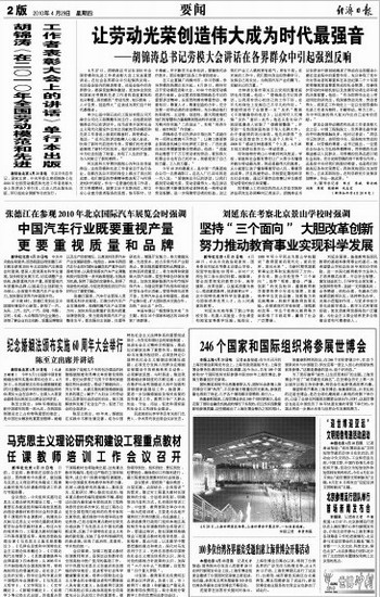 胡锦涛《在二○一○年全国劳动模范和先进工作者表彰大会上的讲话》单行本出版