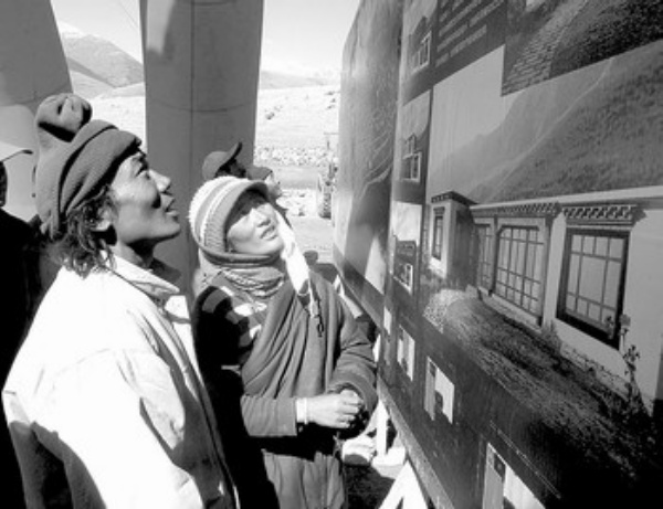 观看重建效果图的禅古村村民图定才让正与他人讨论新房子怎么安排,“我的房子在地震中倒掉了,现在有党和政府的帮助,自己再投入一些资金,过不了多少日子,我们就可以搬出帐篷住进新家了。”