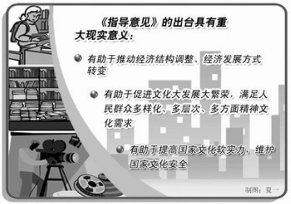 日前,中国人民银行等九部委联合发布了《关于金融支持文化产业振兴和发展繁荣的指导意见》,这是近年来金融支持文化产业发展繁荣的第一个宏观金融政策指导文件。20条涉及金融、财政、资本市场的具体支持措施直指文化产业的资金“瓶颈”,从多个方面破解文化企业的融资难题。