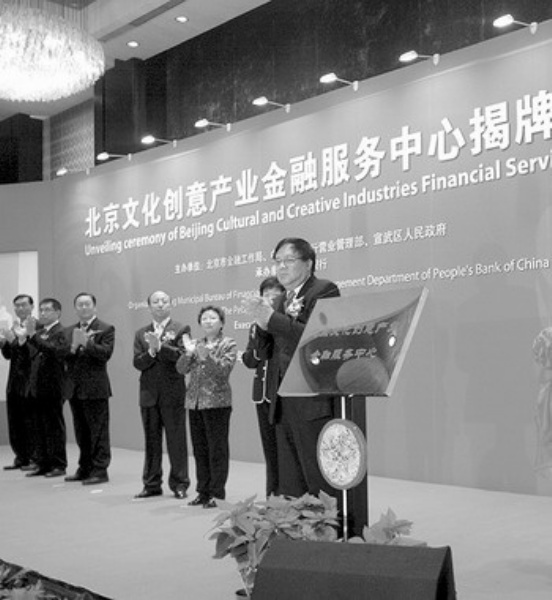 图为北京银行宣武门支行“北京文化创意产业金融服务中心”挂牌现场。