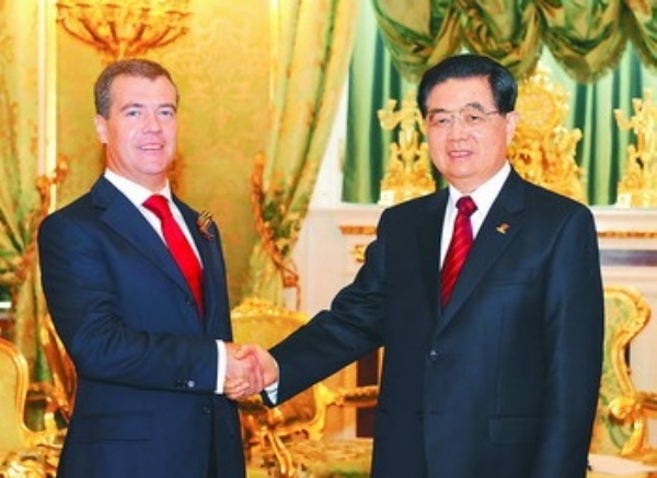 胡锦涛强调,在双方共同努力下,中俄关系进入新的发展阶段,两国在国际事务中的配合更加紧密。中方愿意同俄方一道努力,抓住机遇,应对挑战,全方位深化各领域合作,推动中俄战略协作伙伴关系向更高水平发展。双方应该积极提高经贸合作质量和水平,不断优化贸易结构,规范贸易秩序,推动经济技术合作和大项目合作;积极深化能源合作,以落实《中国东北地区与俄罗斯远东及东西伯利亚地区合作规划纲要》为契机,推动两国毗邻地区合作迈上新台阶;加强人文交流合作,大力推广汉语和俄语教学;推动两国青少年交往常态化机制化,认真落实1000名俄罗斯中小学生赴华参加夏令营活动;充分发挥中俄友好、和平与发展委员会作用。