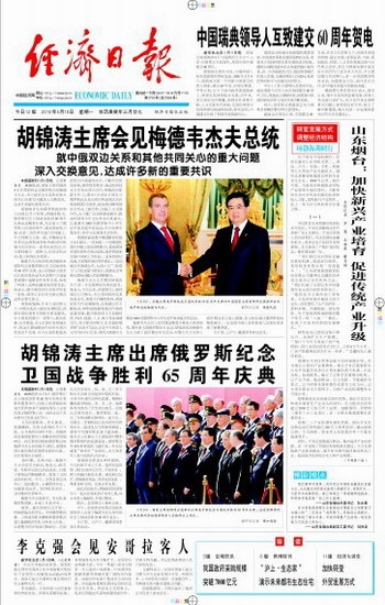 胡锦涛主席出席俄罗斯纪念卫国战争胜利65周年庆典