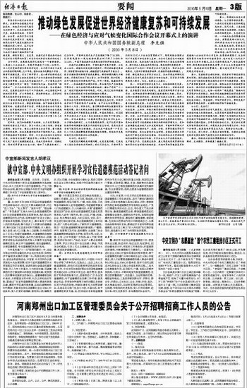 推动绿色发展促进世界经济健康复苏和可持续发展