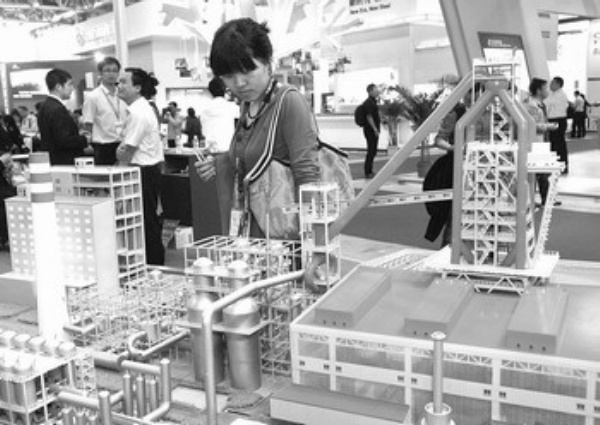 5月11日,在北京举行的国际冶金工业展览会上,参观者观看首钢自主设计的5500立方米特大型高炉模型。当日,为期4天的第十二届中国国际冶金工业展览会在北京新国际展览中心开幕。 刘德斌摄 (新华社发)