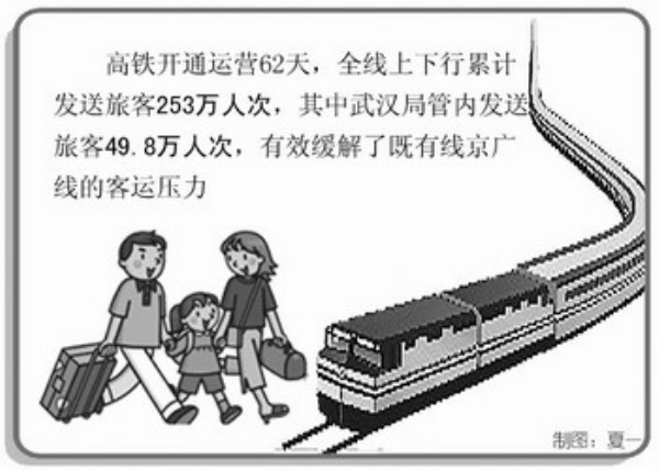 武广高铁开通后,将逐步形成以武汉为中心的1小时中部城市群。