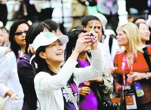 上海世博会的省区市活动周活动,受到海内外参观者的热烈欢迎。在相继举行的北京周和天津周上,花车巡游、文艺演出、民俗展示等系列活动精彩纷呈。 游客兴致勃勃地观看演出,拍照留念。