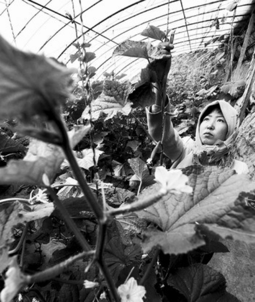 宁夏永宁县望远镇政台村农民在整理黄瓜秧。 2009年,宁夏设施农业面积累计达到84.5万亩,设施农业已成为宁夏农民增收的重要途径。 新华社记者 刘泉龙摄