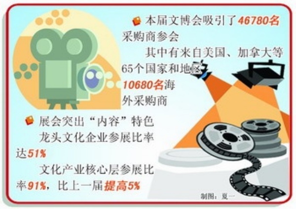 本届文博会吸引了46780名采购商参会,其中有来自美国、加拿大等65个国家和地区的10680名海外采购商。与此同时,还设立“海外采购洽谈展区”,进一步促进文化产业项目和产品与资本的对接。