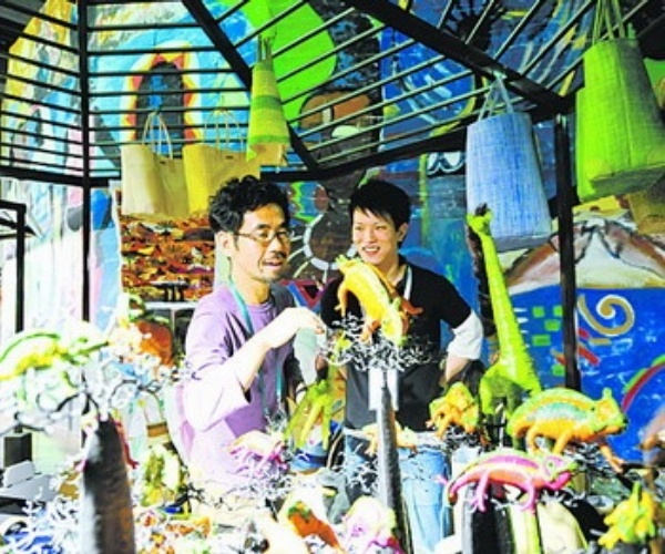 图2非洲联合馆内东西两侧设立的非洲集市是展馆最大的亮点。