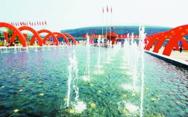 这是5月18日拍摄的福州海峡国际会展中心前方的喷泉。当日,福州海峡国际会展中心建成正式投入使用。该中心位于福州市仓山区,占地面积67万平方米,总建筑面积38.6万平方米,展览面积8万平方米,另建有地下停车场、商务办公楼、服务区、餐饮区、广场等配套设施。 新华社记者 张国俊摄