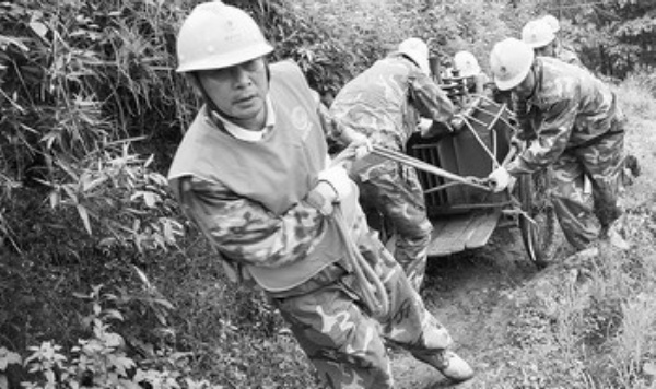 5月10日,江西定南县供电公司员工在鹅公镇企坝村紧急运送变压器。多日强降雨导致定南县电网受损,经过县供电公司全力抢险,县内因洪涝灾害停电的行政村都恢复了供电。 本报通讯员 肖余林摄