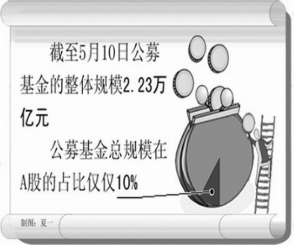 受A股市场大幅调整的拖累,必须保持一定仓位的公募基金业绩整体表现欠佳。以今年一季度末的公募基金份额计算,截至5月10日公募基金的整体规模2.23万亿元。公募基金总规模在A股的占比仅仅10%,而以基金持股市值计算,基金在A股市场的占比已不足10%。根据5月11日公布的净值测算,有4只基金距离5000万元净资产底线已不遥远。而股票型基金中,按一季报披露天治创新先锋规模仅为3605.76万份,资产净值仅为4573万元。
