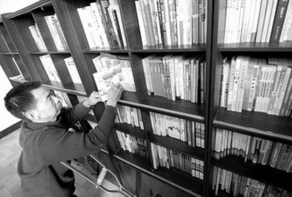 江西省新建县石埠乡观背村农家书屋管理员陈连保在整理图书。 新华社记者 周 科摄