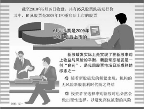 截至5月18日收盘,共有85只股票跌破发行价。其中,61只股票是2009年新股发行重启后上市的股票。