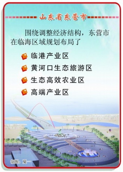 东营市是典型的石油资源型城市。为了突破困扰多年的经济结构难题,东营以加快推进黄河三角洲开发建设为总战略,确立了高效生态的基本定位。针对市属经济薄弱的问题,他们在临海区域规划布局了临港产业区、黄河口生态旅游区、生态高效农业区、高端产业区四大主体产业区。临港产业区着力发展精细化工产业,建设能源供给基地。该市与中海油签订了全面合作协议,由其收购经营东营港,投资建设中海油工业园、原油储备基地、成品油仓储和物流园区。高端产业区作为黄河三角洲先进制造业和高新技术产业的主要承载区,已引进建设了泰克拓普等8个电子信息项目和风电法兰等11个新能源项目。