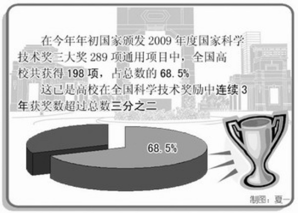 在体现原始创新能力的国家自然科学奖中,去年我国高校获得二等奖16项,占授奖总数的57.1%。从2004年到2008年,高校共获得自然科学奖95项,占授奖总数的56.5%,其中共授予一等奖2项,均为高校所获。提到这串数字,与会校长们无不感到高兴和自豪,这从一个侧面充分印证了高校是我国基础研究的主力军。