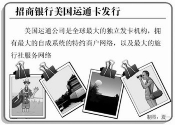 本报讯 记者赵晓强报道:招商银行与美国运通合作的招商银行美国运通卡日前在京发行。招商银行美国运通卡的推出是为了满足当前中国消费者急剧增长的境外消费需求,持卡人能够享受美国运通在全球范围内丰富的信用卡优惠资源、积分奖励计划和专业的全球服务保障。