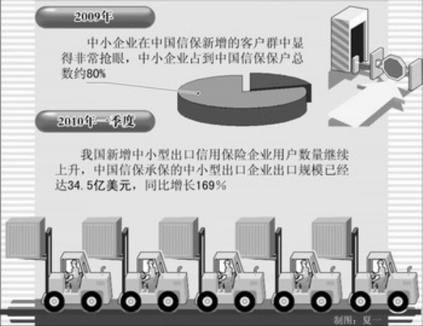 2009年,中小企业在中国信保新增的客户群中显得非常抢眼,中小企业占到保户总数的约80%。而最新数据显示,今年一季度,中国信保承保的中小型出口企业出口规模已经达34.5亿美元,同比增长169%。