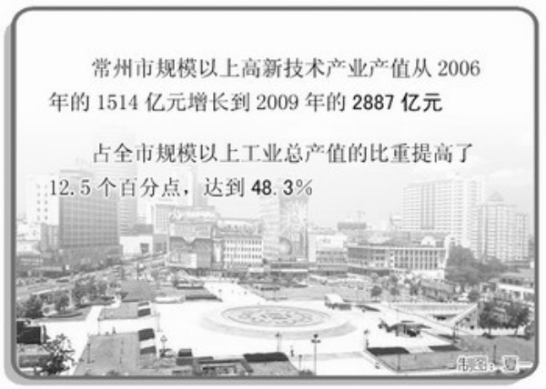 该市规模以上高新技术产业产值从2006年的1514亿元增长到2009年的2887亿元,占全市规模以上工业总产值的比重提高了12.5个百分点,达到48.3%。