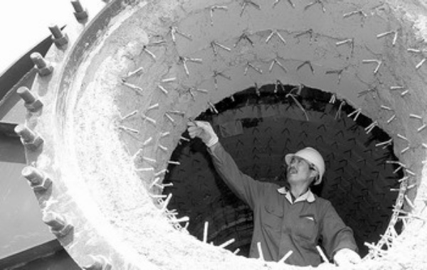 一名工人在国宏化工一个新建的尾气焚烧炉内施工。 山东兖矿国宏化工公司是一个以高硫煤为原料生产醇烃酯类绿色产品的大型煤化工企业。该公司加大力度,进一步提升节能减排目标,通过改造设备等措施,力争使该公司成为全国同类行业中节能减排示范标兵。 新华社记者 陈建力摄