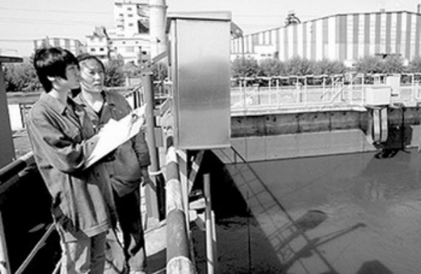 | 4月17日,西林钢铁集团的工作人员在检查排水净化情况。