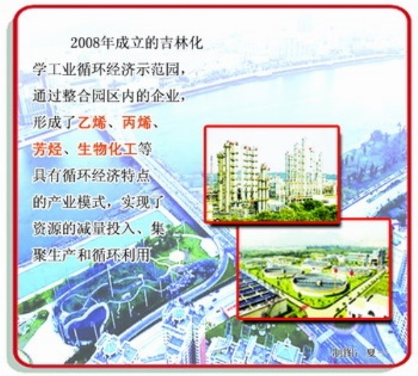 同时,吉林化学工业循环经济示范园通过产业链的纵向延伸和横向耦合,充分整合园区内的企业,按照下游关联的特点,形成乙烯、丙烯、芳烃、生物化工等具有循环经济特点的产业模式,实现装置间、企业间原料、中间体产品、副产品和废弃物的互供互享关系,达到资源的减量投入、集聚生产和循环利用,努力实现园区废物的资源化和“零排放”。