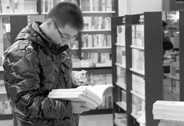 图2:凤凰国际书城内,读者正在认真挑选图书。