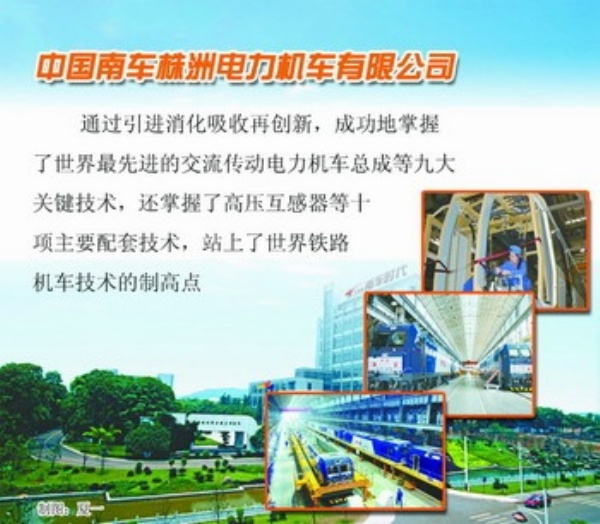 自2003年以来,按照铁道部提出的“掌握世界一流的技术,生产世界一流的产品,建成世界一流的基地”的目标,中国南车株机公司通过和谐1型机车3个项目的引进、消化、吸收再创新进程,成功地掌握了世界最先进的交流传动电力机车总成、车体、转向架、牵引变压器、牵引电机等九大关键技术,还掌握了受电弓、真空断路器、高压互感器等十项主要配套技术,企业一举站在了世界铁路机车技术的制高点。