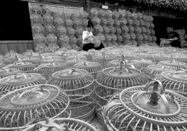 在村民杨双宝家,他和妻子正在做鸟笼底部的竹边。他们告诉记者,鸟笼固然漂亮,要制作起来可不是一件容易的事情。“即使制作不加任何雕刻的‘原生态’鸟笼,也要经过十几道工序才能完成。如果是制作比较精致的笼子,还需用小刀慢慢雕琢,一个笼子要花10至20天才能做成,顶级的鸟笼所要花费的功夫就更多了。”据了解,他俩一天能做6只普通鸟笼,做好一只成品中档鸟笼交给公司就有25元钱的利润,一天下来每人平均收入90元钱。